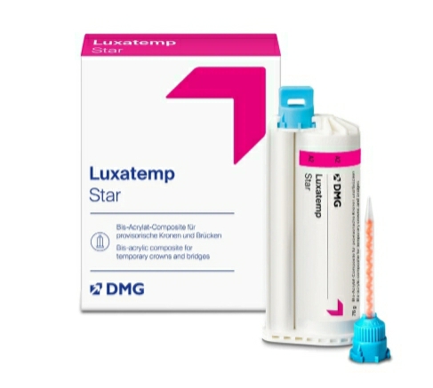 Luxatemp Star is an advanced auto-mixing composite resin from DMG, designed for creating high-quality temporary dental restorations such as crowns, bridges, inlays, onlays, and veneers. It is known for its top results in flexural strength, break resistance, and increased initial hardness, making highly aesthetic temporaries more stable than ever before. Luxatemp Star has a long-standing reputation for precision-fit temporary crowns and bridges, ensuring reliable performance in dental applications.